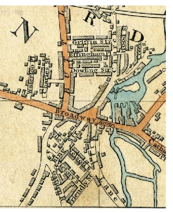 China Row (shown in green), close to the Bow Bridge. That the family had lived in