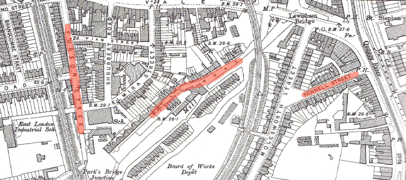 living at 72 Mill Road which ran alongside Lewisham Bridge Mill, a corn mill (shown