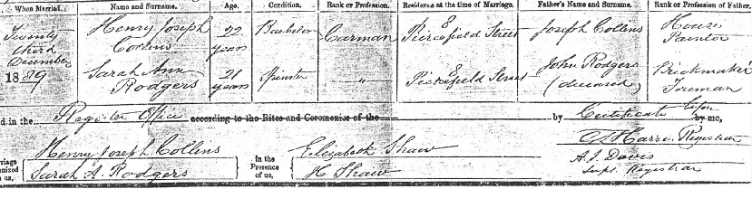 Office in St Pancras (the marriage entry is shown below). Harry gave his age as twenty-two