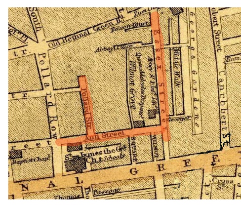 street away in Ann Street. This map from the 1860s show Pollard, Ann and Essex Street.