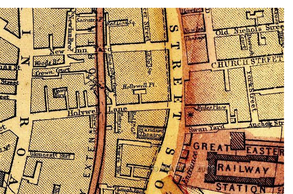 York Street, Shoreditch. Two years later, the family moved to 139 Holywell Street,