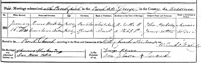 The first evidence of Thomas Hockaday is from 16 January 1840 when he married Anne