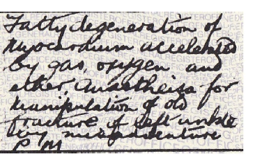 the problem and was given gas, oxygen and ether. This was a common form of anaesthesia