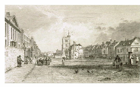 villages; the engraving on the right shows Stratford High Street in about 1840, looking