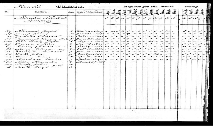 John’s name, and those of his siblings, appears in the Workhouse school register; John’s name is the last entry in the extract below. The symbol ‘’ indicates ‘good’ behaviour, although other pupils were not so well-behaved and the register contains comments such as ‘locked up for throwing his bread at the man in charge’ and ‘locked up for rioting in the dormitory’.