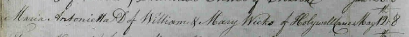 while living at Holywell Lane, Mary gave birth to a daughter who was duly baptised