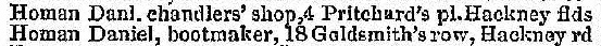 in Bethnal Green where Daniel was working as a shoemaker, although probably supplementing
