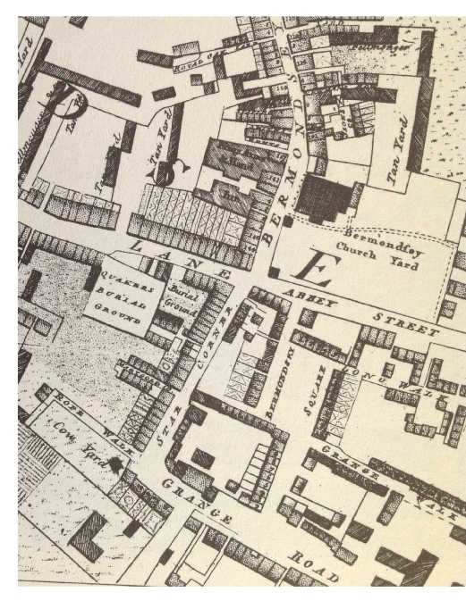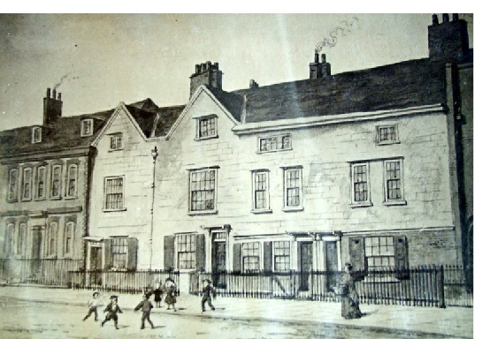 At the time his first child was baptised, R obert and his family were living at Grange Walk, a respectable street with houses dating from the late seventeenth and early eighteenth century, as well as rows of newly built terraced houses for artisans. The illustration on the left shows some of the more well-to-do houses; the map (left) shows the area in about 1800. To the north of the Church are several tanneries and at the end of Grange Road is a yard for cows which would have supplied fresh milk to local residents. To the east and not shown on the map was a spa and gardens which had opened in the 1770s.