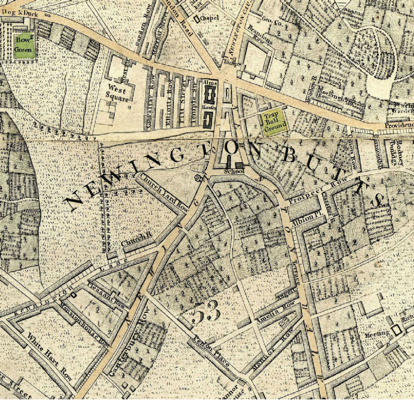Little is known about Robert Cawt’s early life. He was probably born around 1765 in south London - there were Cawte’s living in the capital as early as the 1600s. By 1789 he was living in the Parish of Newington St Mary, also known as Newington Butts supposedly from the ancient butts for archery which once stood there, although no evidence exists of this. Only a mile south of London Bridge, it had remained a farming village with a low level of population until the second half of the eighteenth century when the landowner, Henry Penton, began to sell of parcels of land for development. New roads sprung up bringing development opportunities, although in 1802 Newington consisted of only about 600 houses, many of which were small tenements in bad condition. The map below shows the rural character of the area, and the illustration above shows the main thoroughfare around 1800, with the spire of the Church of St Mary Newington in the distance.