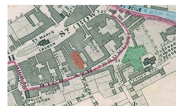 of Bow High Street (Oliver Place is marked in orange on the map below), it became